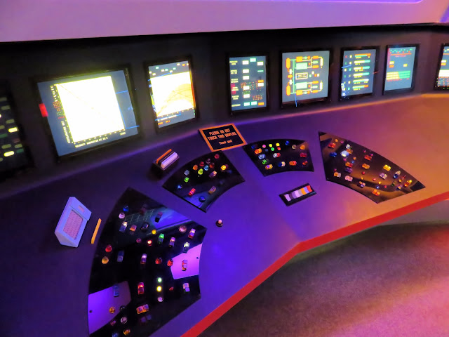 For whatever reason, I expected to see a number of individual set pieces linked by utilitarian backstage hallways. As a result, I was surprised to step into a contiguous Enterprise that included corridors (one main corridor with two spurs) giving access to each room. Evidently, this was exactly how the original set was configured. The set is immersive and aside from missing a ceiling (like the real set), we felt that we were actually aboard Captain Kirk's 1960s Enterprise.