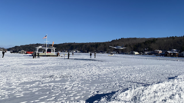 Ed first visited Alton Bay with me in 2018, then turned the tables by flying me and Paula there in his Archer II in 2021. But this was his Archer's first appearance there since she donned her beautiful new wardrobe. Looking cool on the ice!