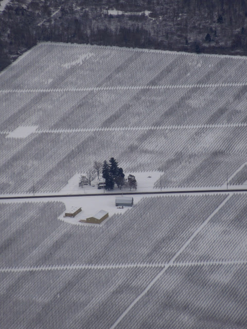 The Bear peered downward past the wing and studied the newsprint winter vista laid out below, her camera held at the ready. "I haven't flown in winter for a long time," she stated. It rang true, though I did not remember how long it had been.